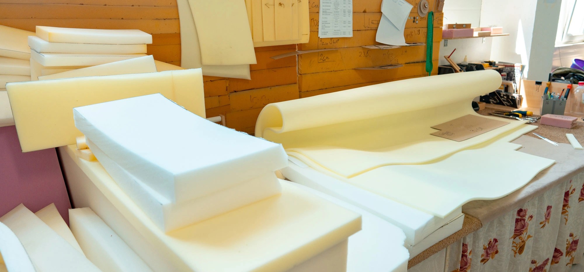 Kami menawarkan berbagai pilihan busa untuk kebutuhan kasur, bantalan sofa, hingga berbagai produk lainnya, serta menyediakan material pelapis seperti kain sofa, kulit sintetis, dan bahan springbed yang nyaman juga tahan lama.